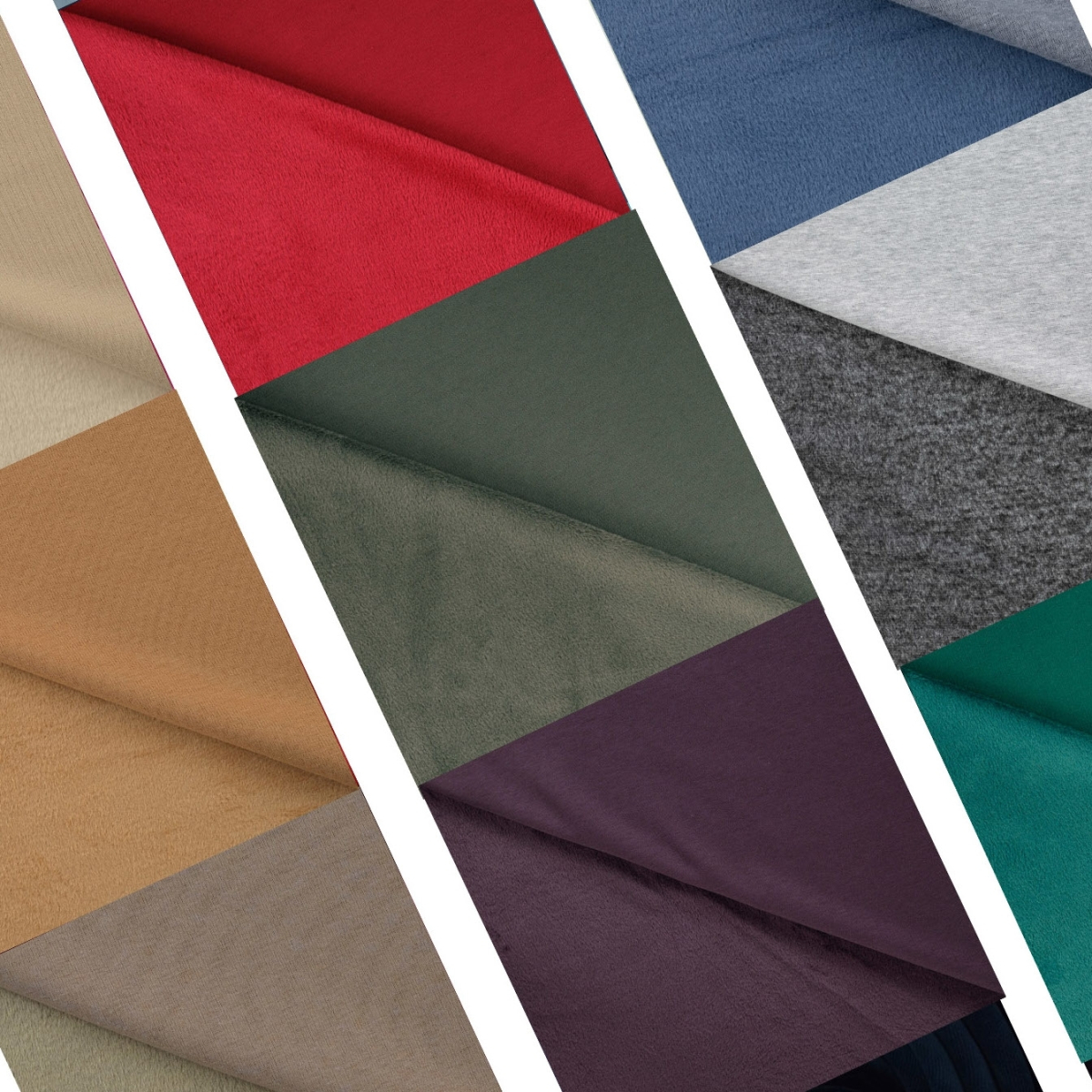 Carte de couleurs de notre sweat polaire alpine au format DIN A4. Cette carte présente de petits échantillons de tissu (env. 7 × 4 cm) de toutes les couleurs disponibles.