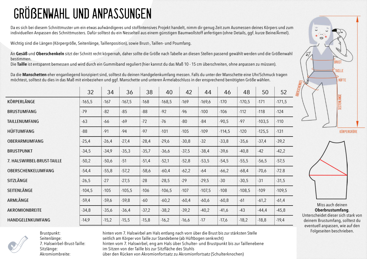 Ce patron de couture est en allemand. Il est disponible sous forme de fichier numérique à télécharger sur votre ordinateur avant de l'imprimer et l’assembler vous-même !