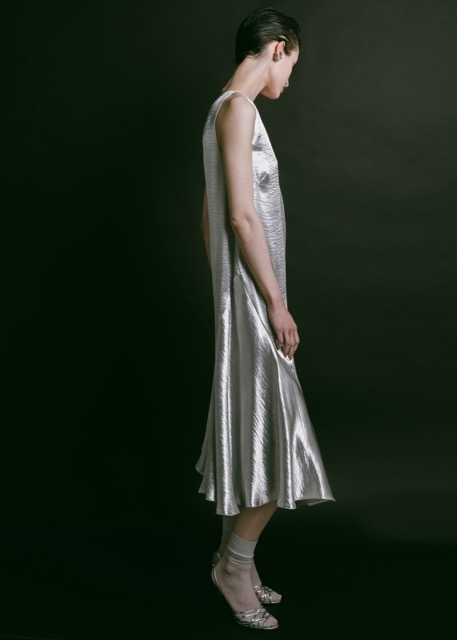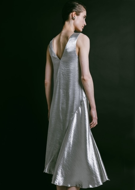 sa coupe. La silhouette droite, coupée en biais, laisse le
