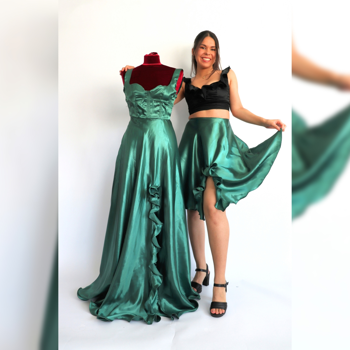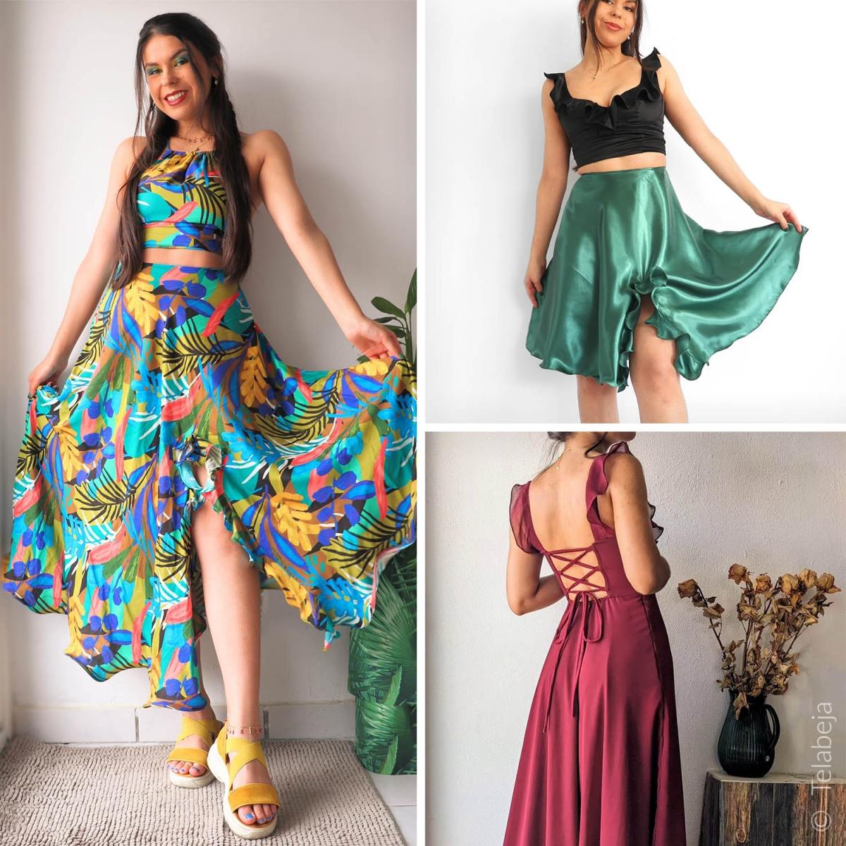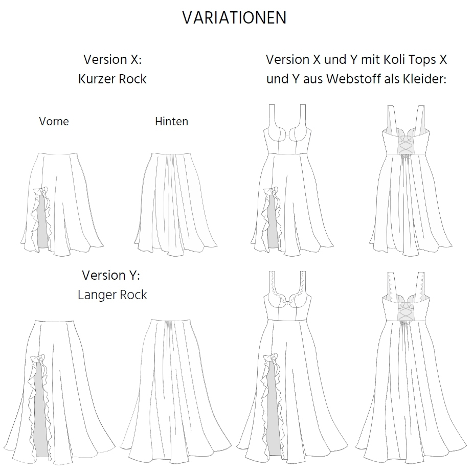 - 2 versions différentes : jupe courte et jupe longue. Combine-la avec le Top Koli pour obtenir plus de 8 versionsdifférentes !