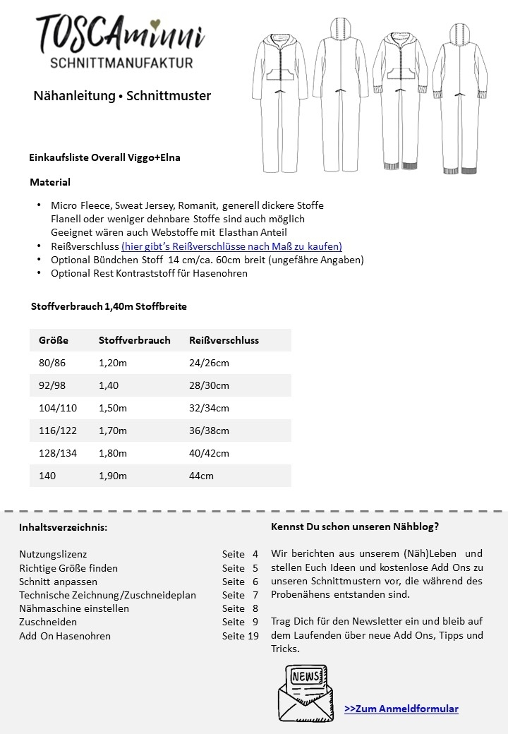 Patron overall enfant pdf Vigo + Elna TOSCAminni Schnittmanufaktur, en allemand Réf.: TOMI-72
