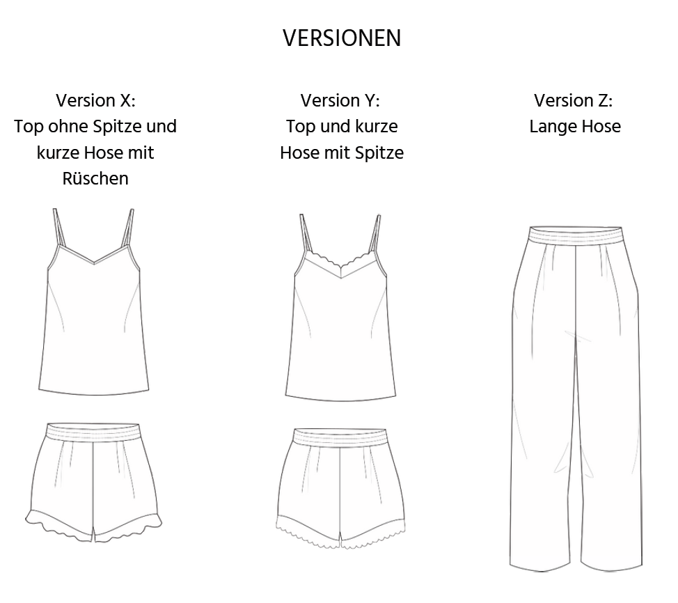 Le patron Yolotl Loungewear est un patron de couture digital avec des instructions et un patron PDF imprimable pour coudre un haut et un pantalon avec des détails de volants et de dentelle en option.