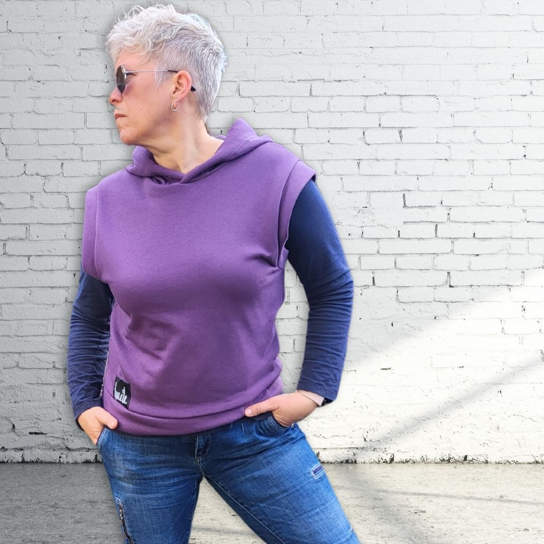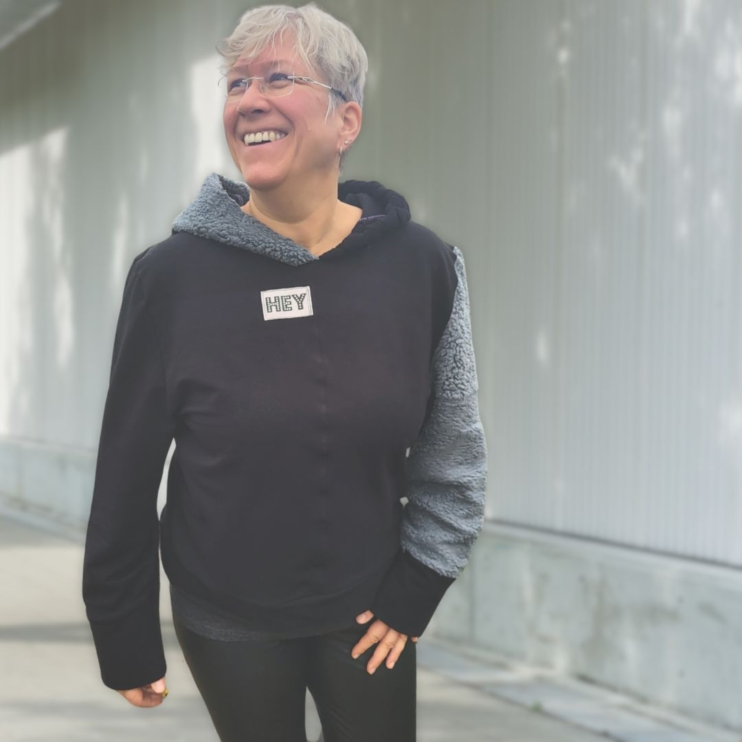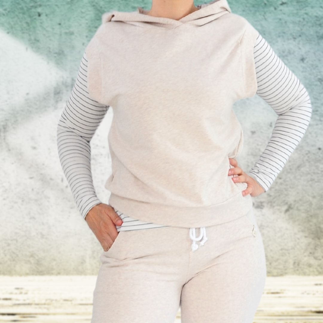 Le patron Lya te permet de confectionner un pull-over à capuche sympa, parfait pour les journées plus fraîches en combinaison avec un t-shirt long. La capuche et la poche à poche donnent au pull-over une touche cool.