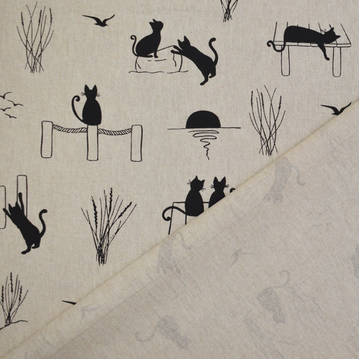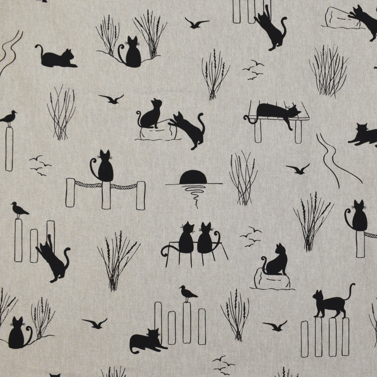 Tissu déco semi panama Cats Life, naturel Réf.: DL3270-690