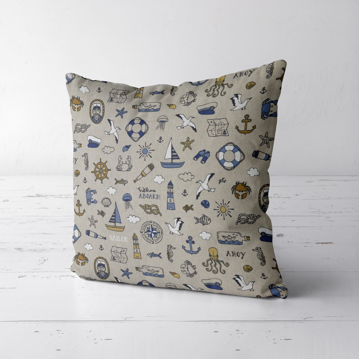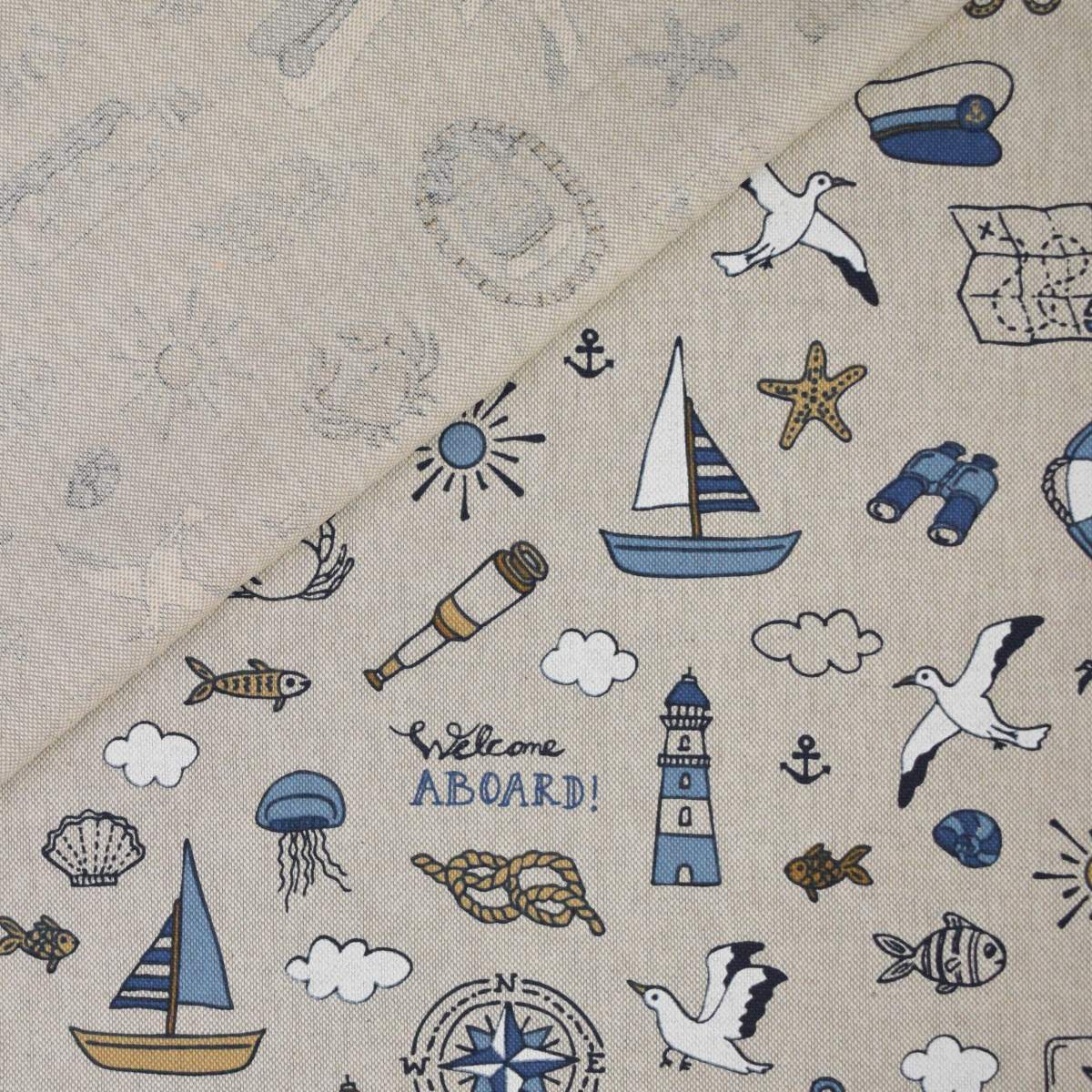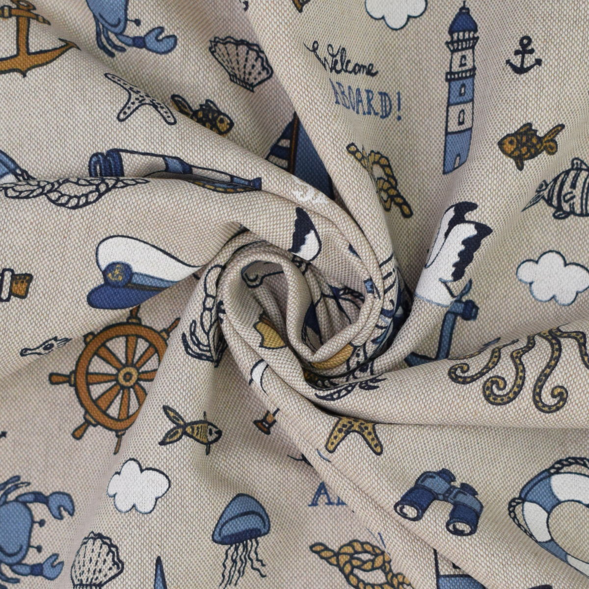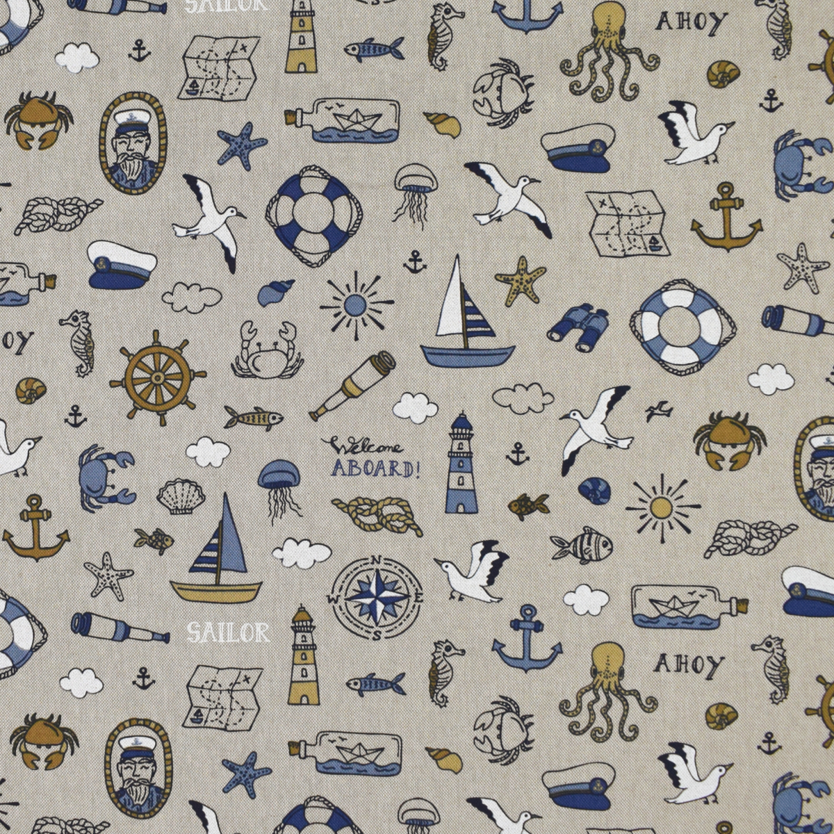 Tissu déco semi panama Nautical Doodle, naturel Réf.: DL3267-940