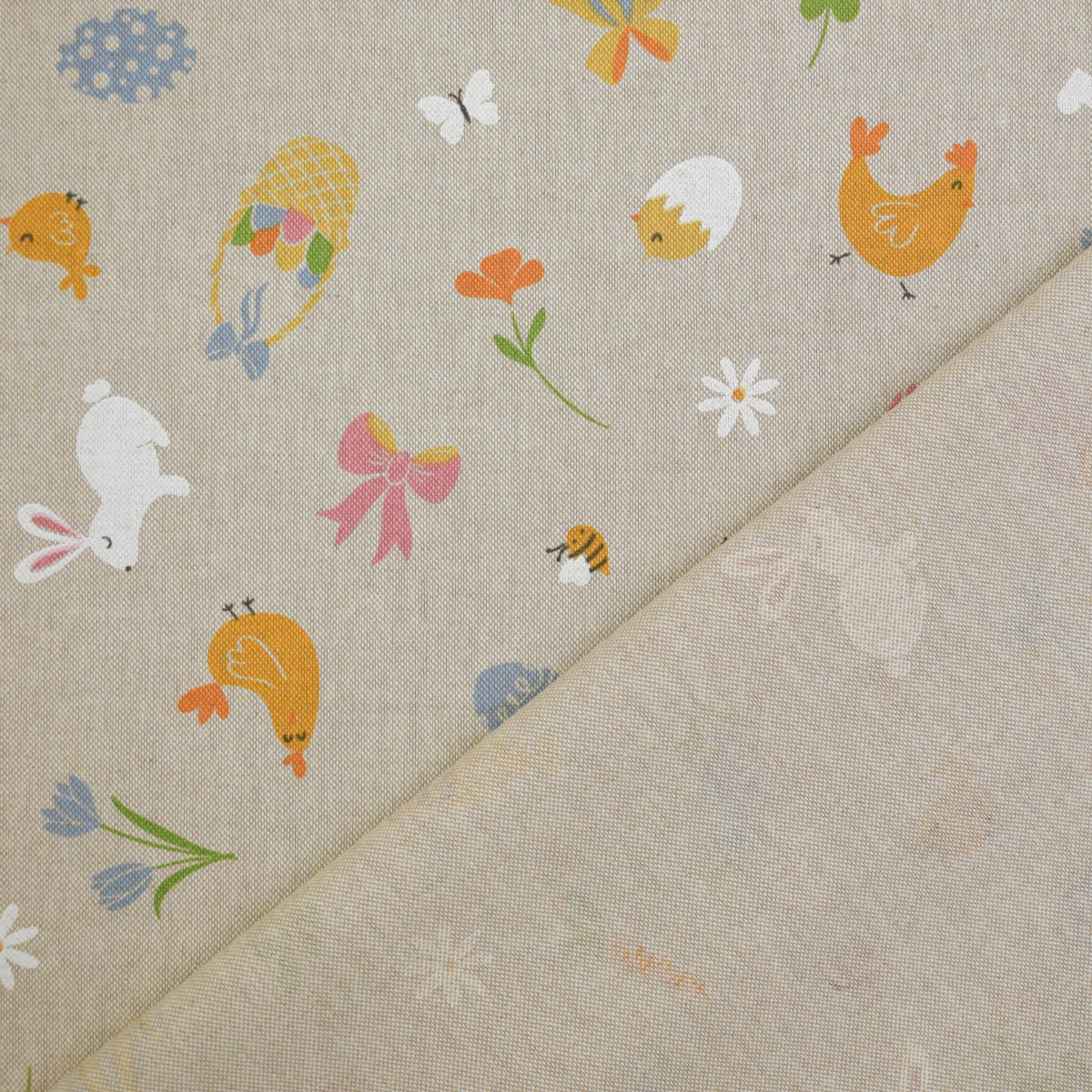 Tissu déco semi panama Pâques, naturel Réf.: DL3271-002