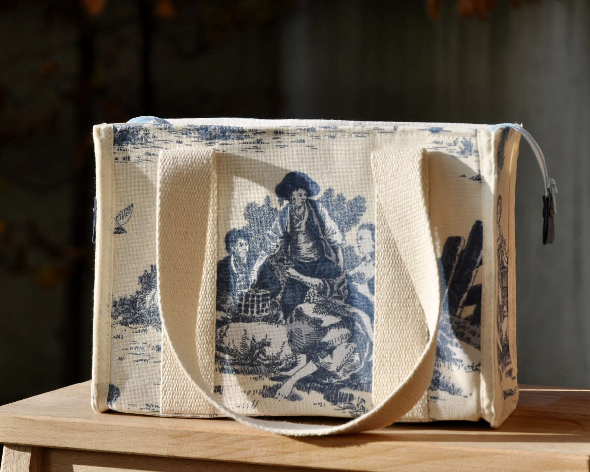 Ce tissu décoratif avec des motifs de toile de jouy est idéal pour les décorations d'intérieur comme les nappes, les coussins, les rideaux et les accessoires, par exemple les sacs.