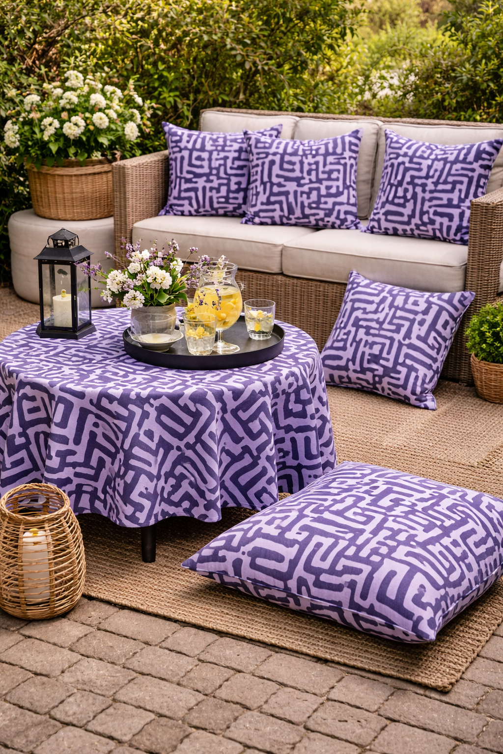 Tissu enduit coton déperlant Abstract Shapes, lilas Réf.: C5945-003