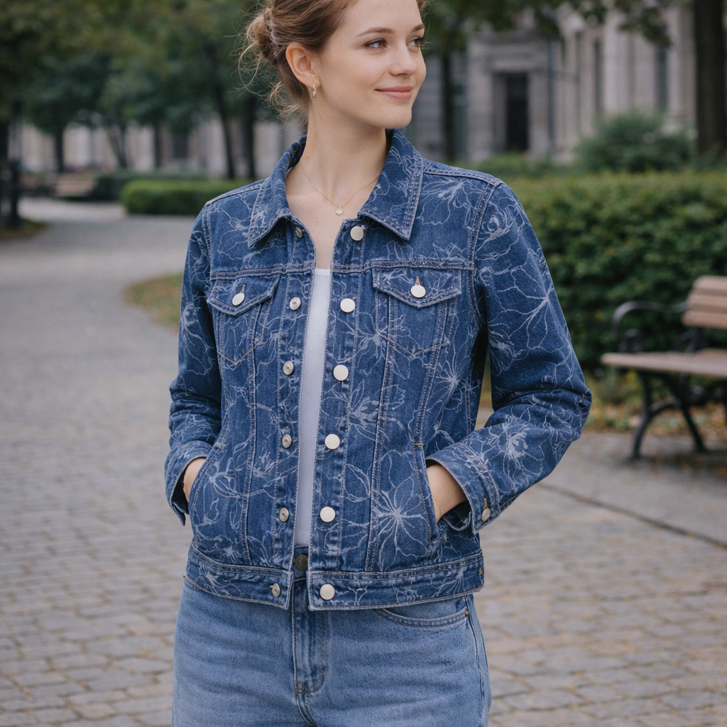 Tissu jean denim Jacquard Fancy Flowers,, bleu moyen Réf.: Q11802-960