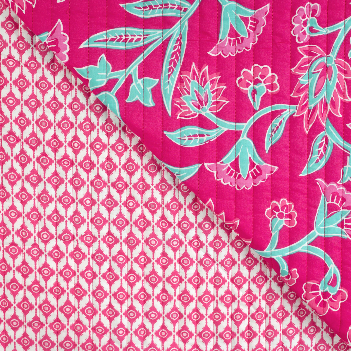 Tissu matelassé molletonné double face Enjoy Bright Horizon big flowers, rose fuchsia Réf.: P16034-170