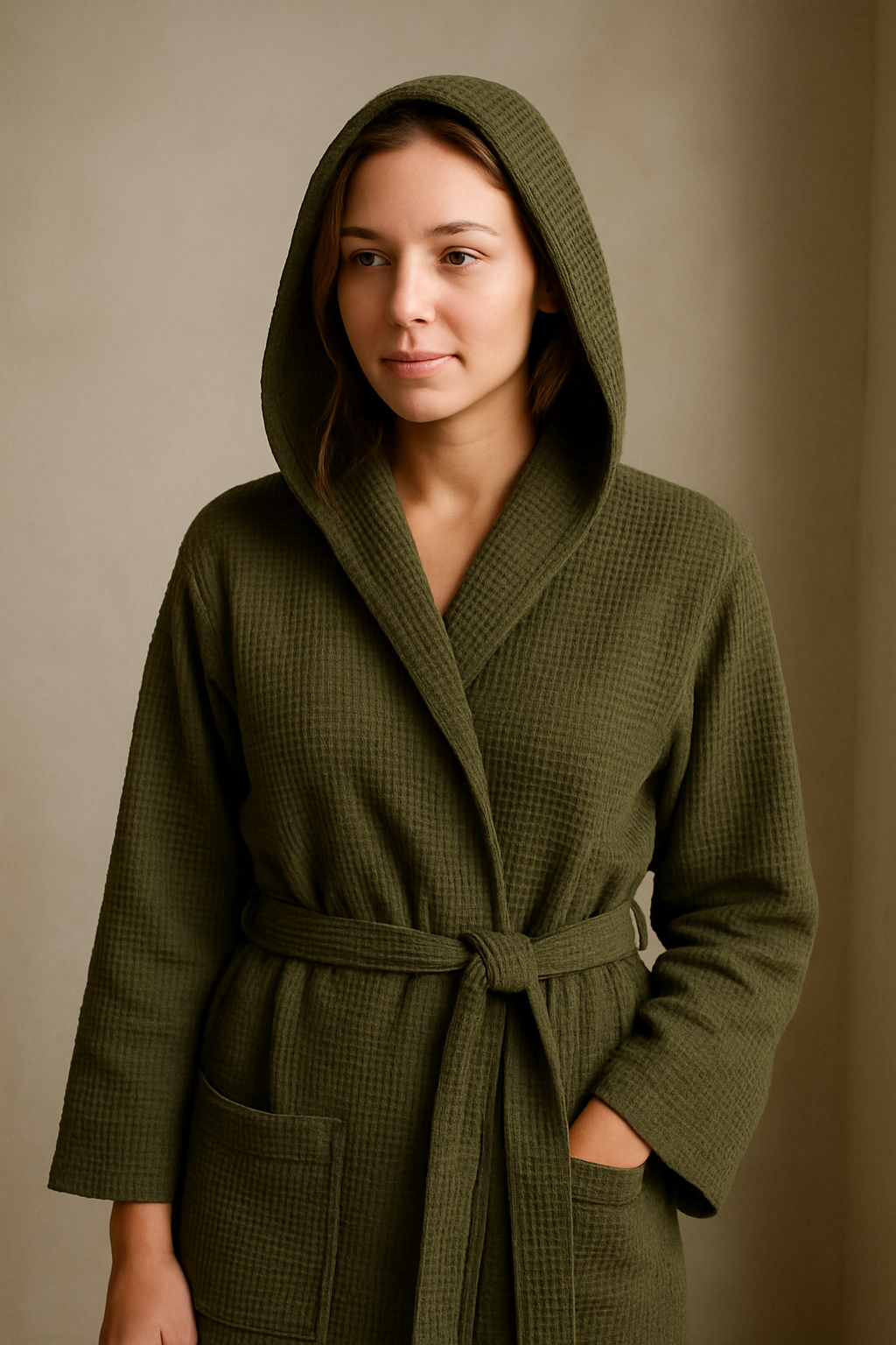 Tissu nid d'abeille gaufré, vert olive Réf.: 6227-055