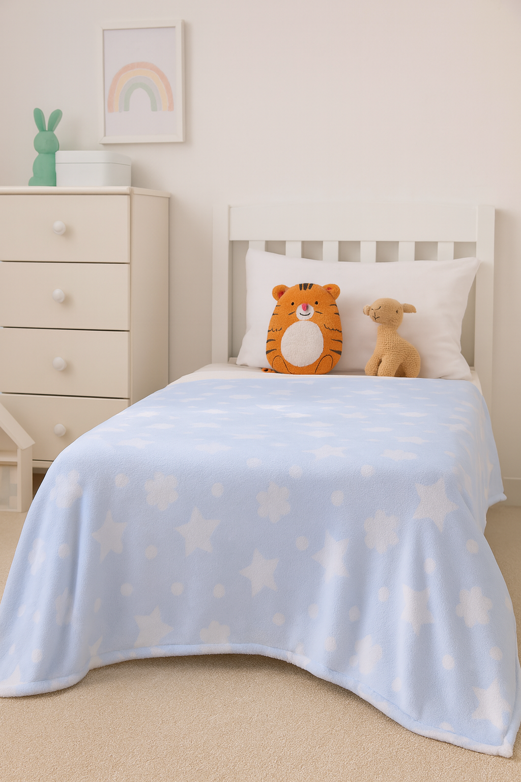 Tissu polaire doux wellness Flowers and Stars, bleu clair Réf.: POLBAB-5000