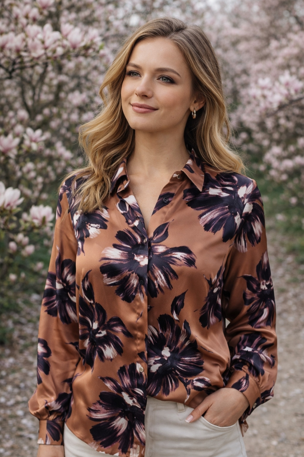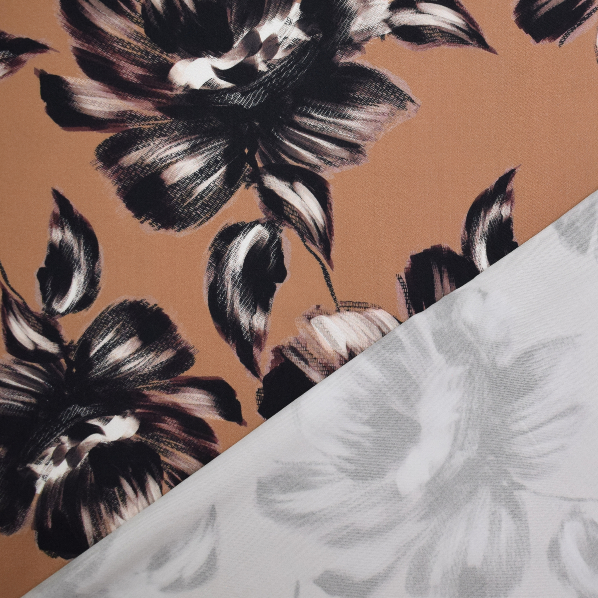 Tissu satin de viscose stretch Big Flowers, marron Réf.: 22299-100