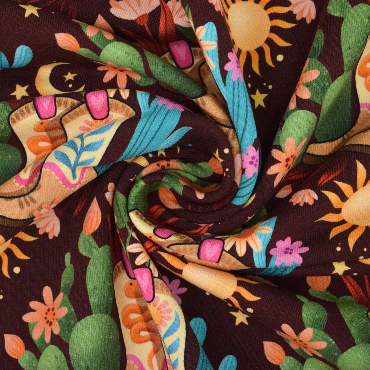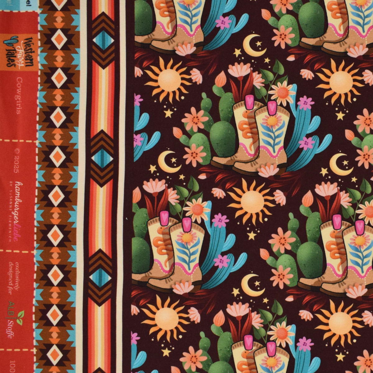 Tissu sweat léger bio Albstoffe Hamburger Liebe Western Fairy Tales Cowgirls, marron Réf.: 904S42F-3