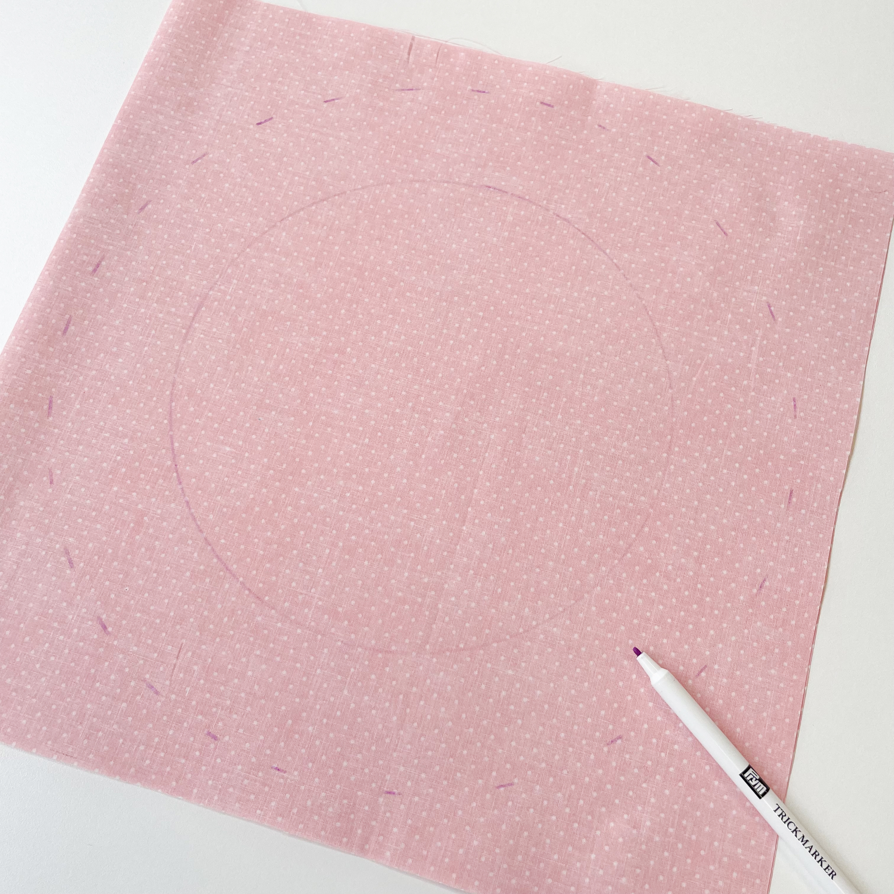 Pliez en deux votre pièce de tissu, endroit contre endroit, devant vous et placez votre bol dessus, la tête en bas.