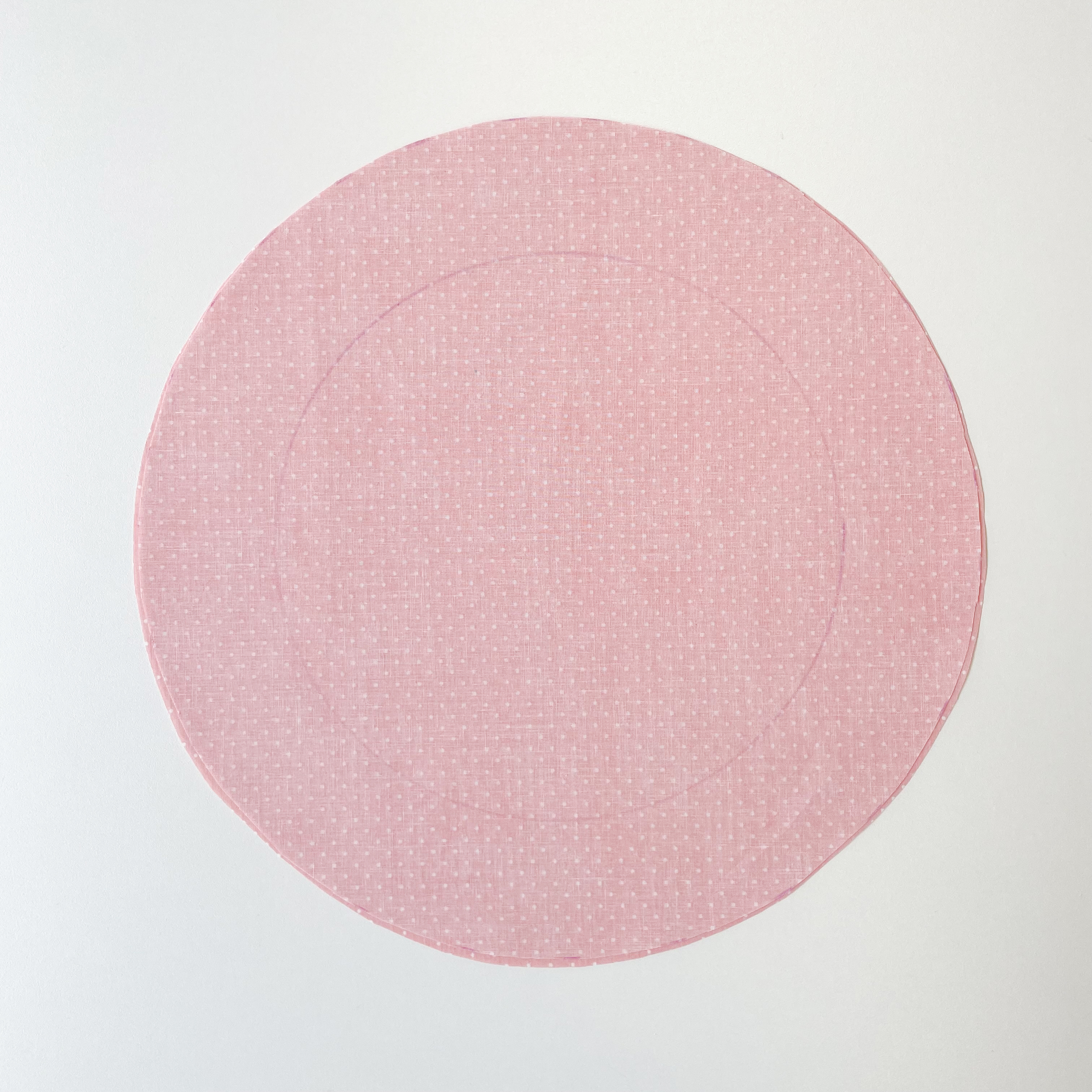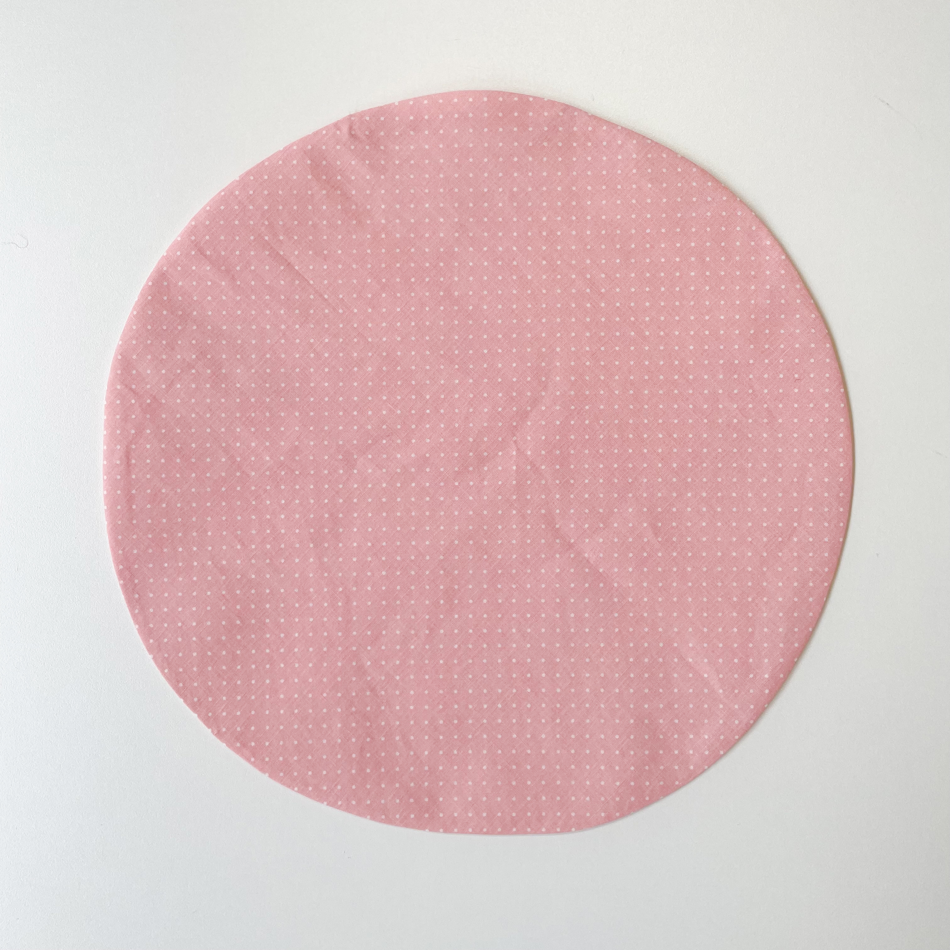 Découpez ensuite, le long du cercle extérieur. Vous découpez deux couches de tissu.