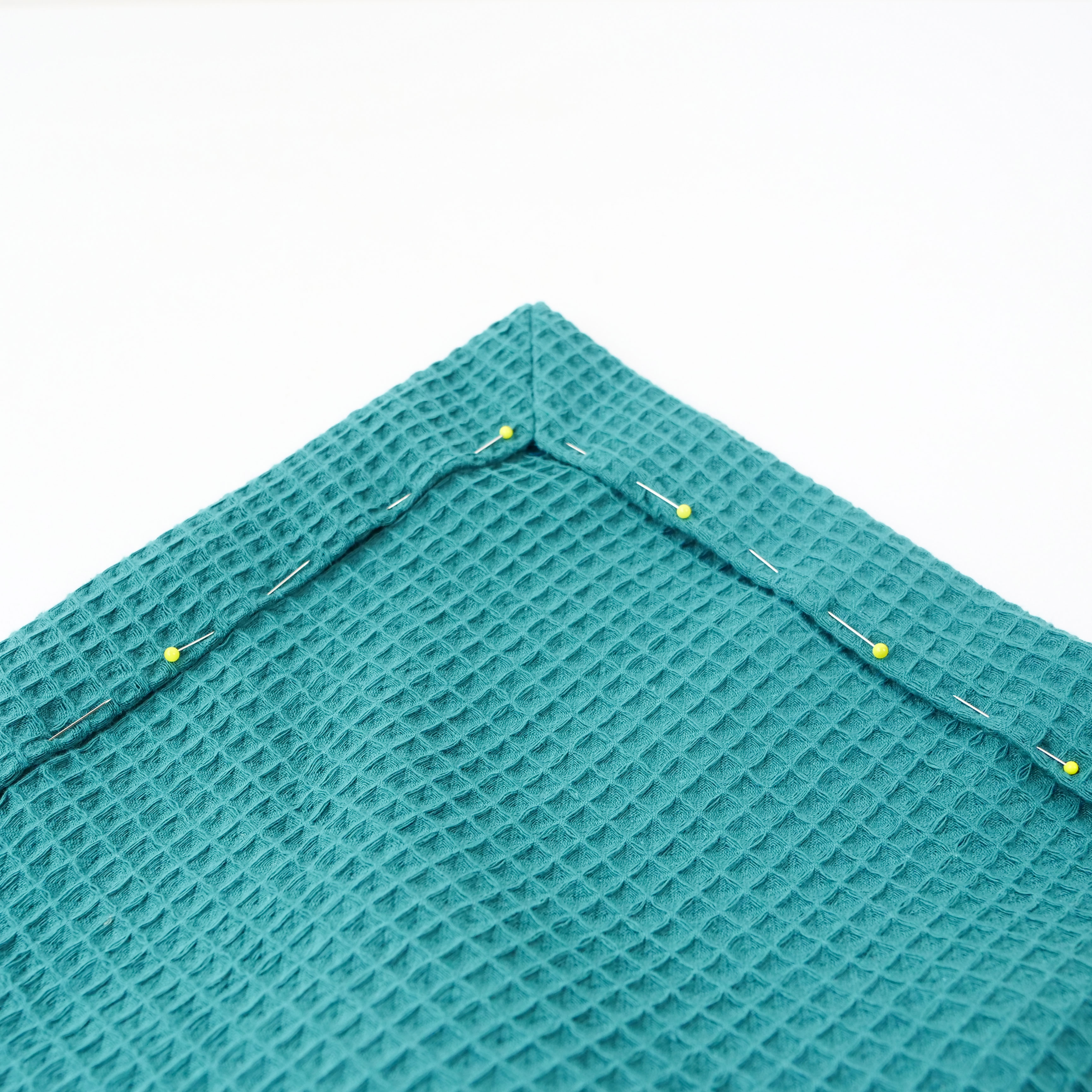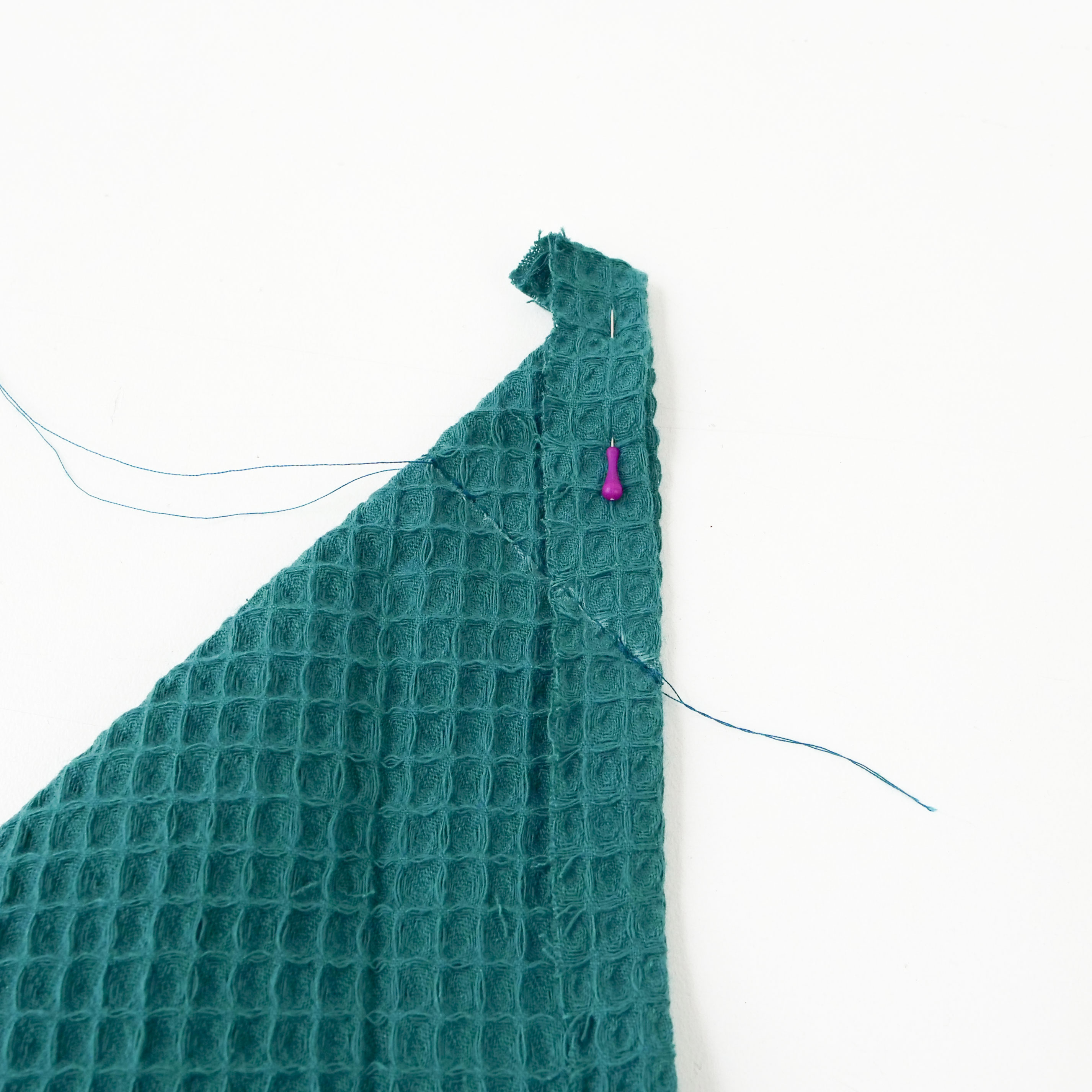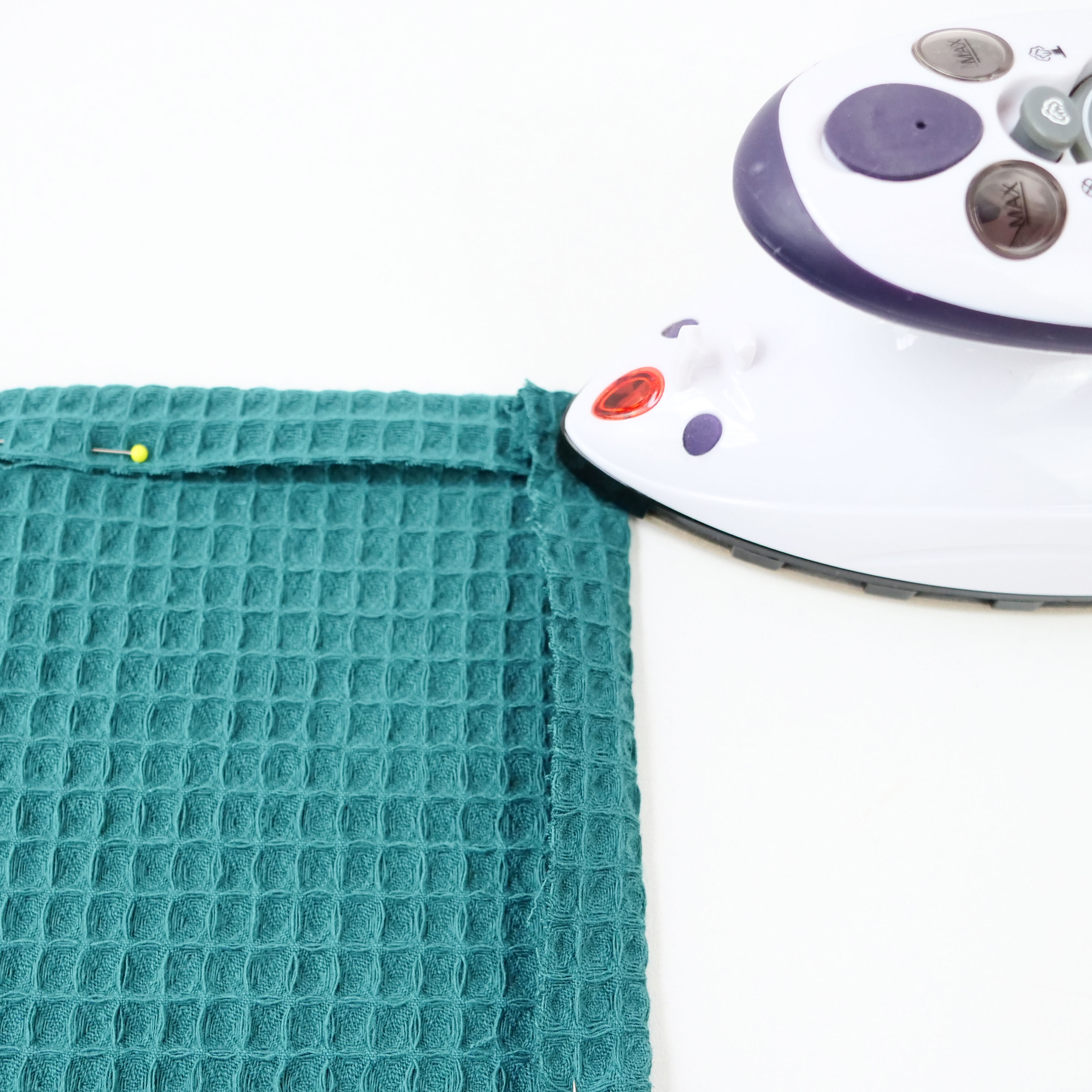 Pour finir, fixez les ourlets angle tout autour avec des épingles, repassez-les encore une fois et cousez-les près du bord intérieur. TERMINÉ !