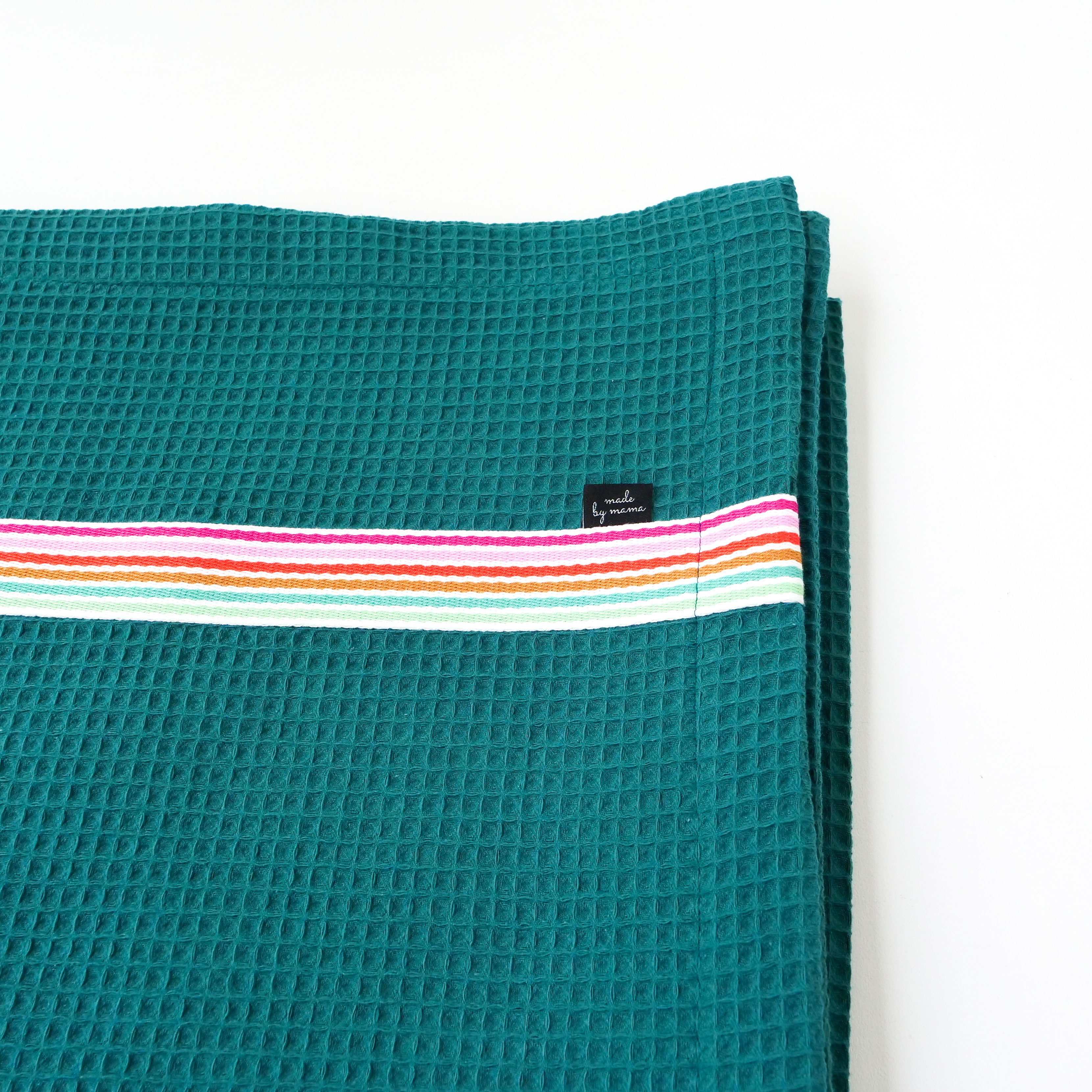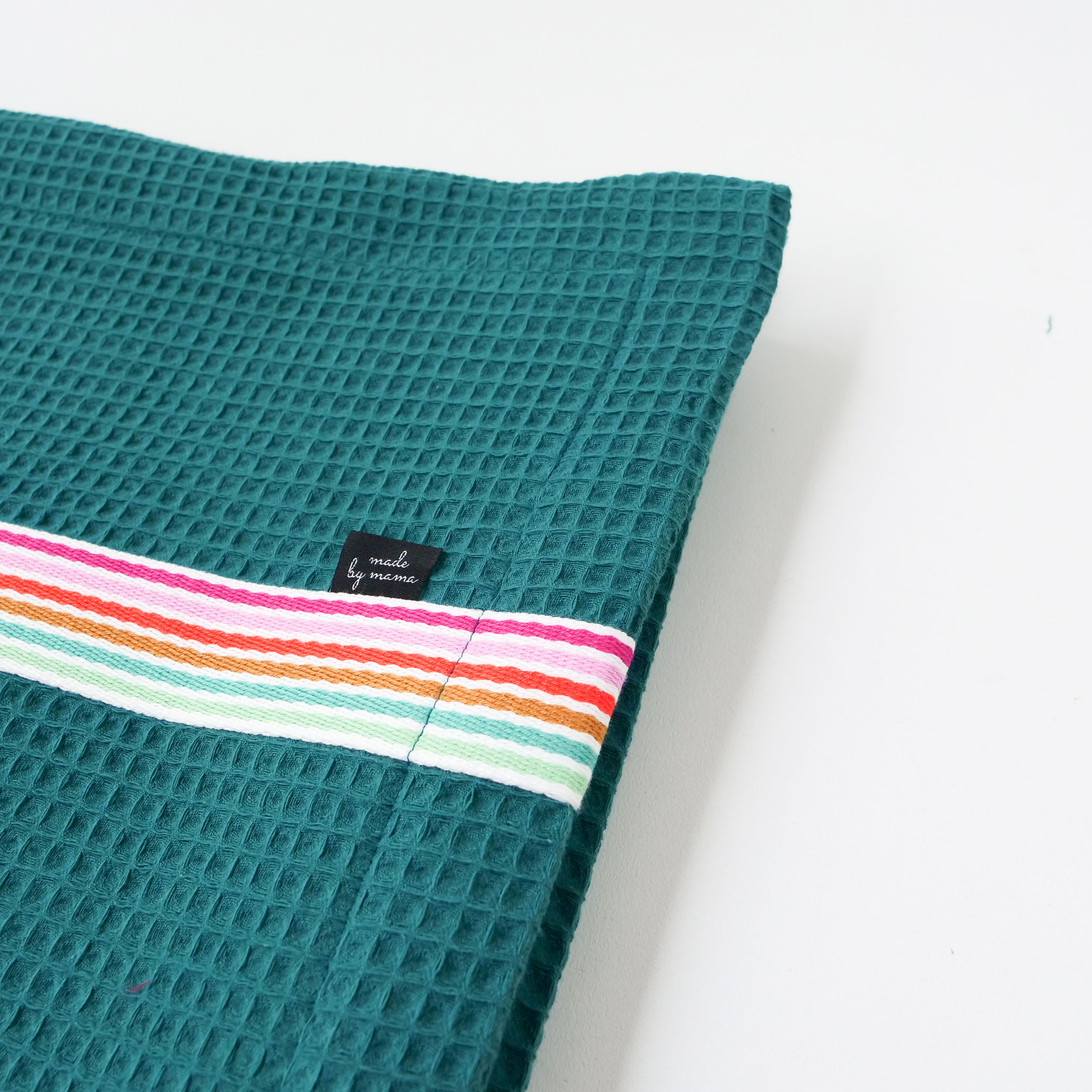 Une serviette de bain figurait depuis longtemps sur ma liste de souhaits parmi les choses que j’aimerais absolument coudre moi-même. Avec le tuto et patron gratuit Sonja, c’est maintenant très facile et rapide ! Habituellement, le tissu éponge est le tissu idéal. Mais pourquoi ne pas la réaliser également avec un superbe tissu nid d’abeille ? La saison des baignades arrive et je suis prête 🙂