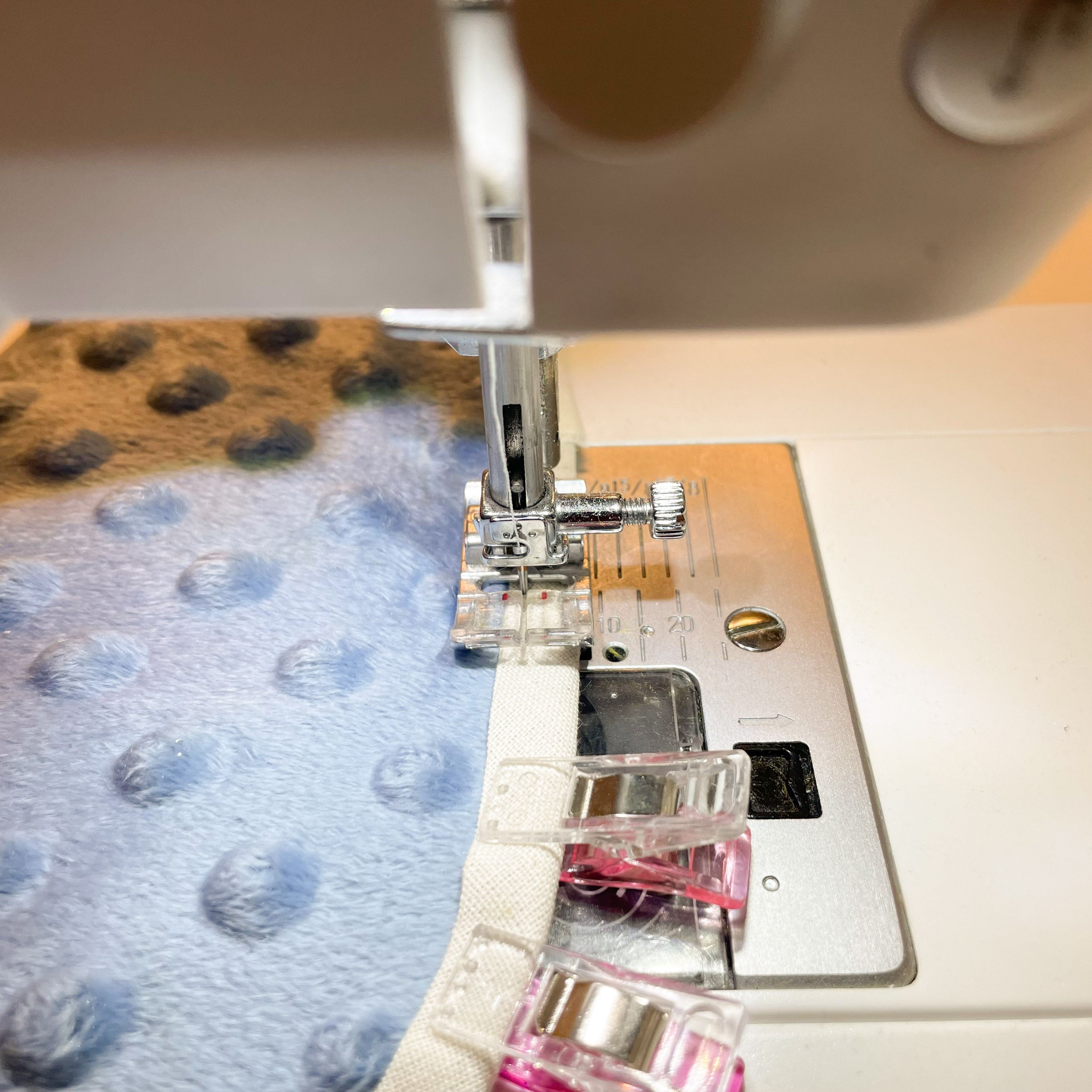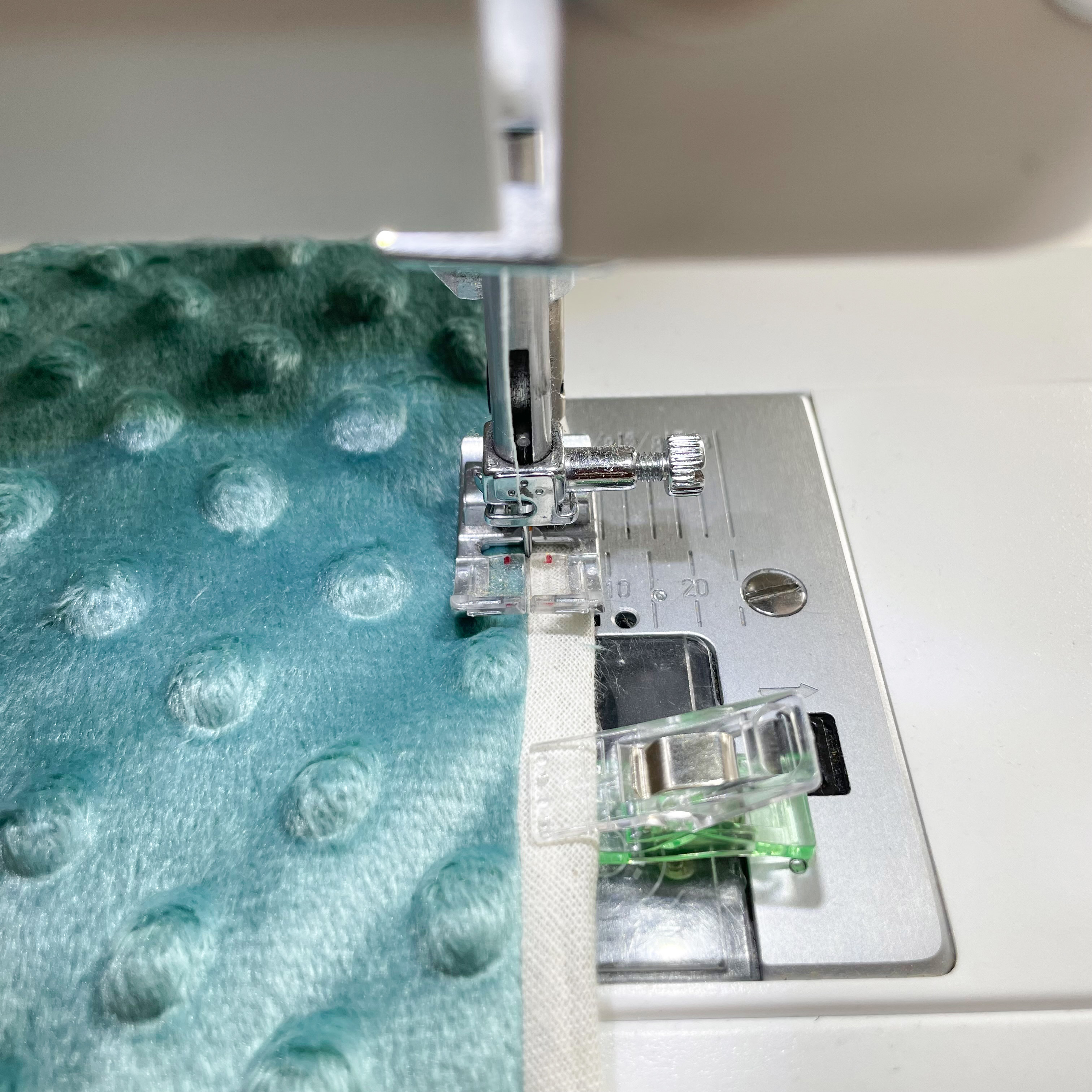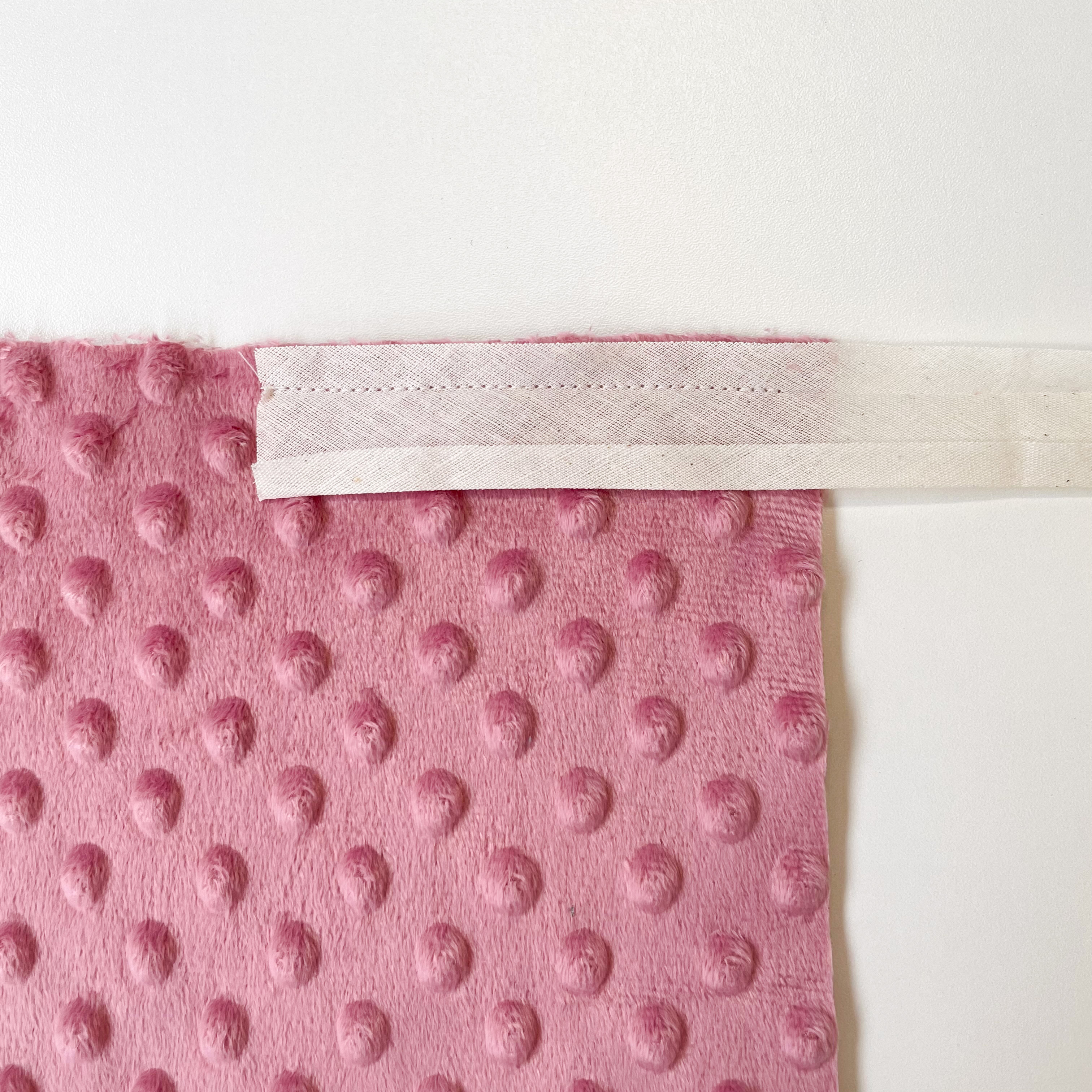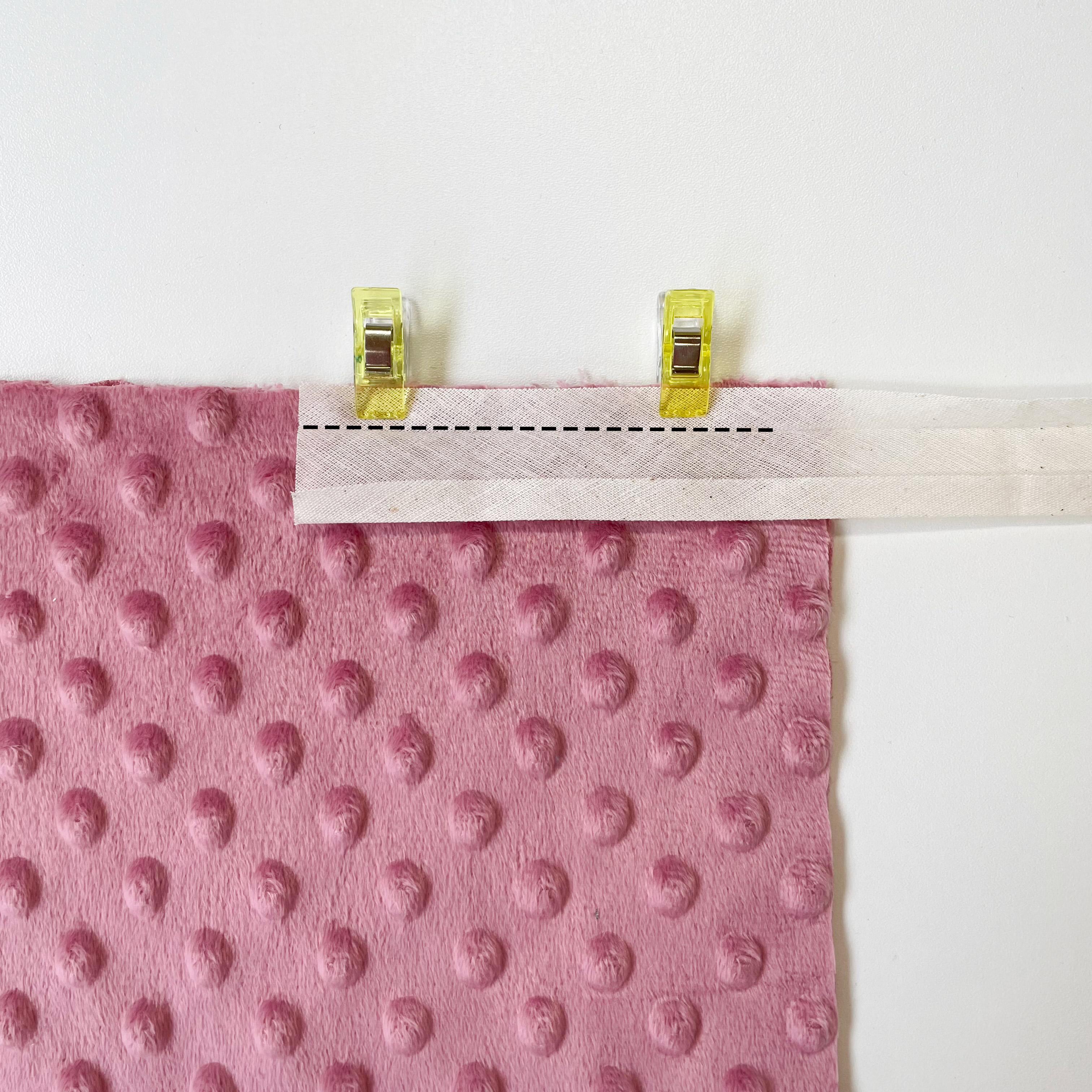1. Dépliez le biais et fixez-le le long du bord de votre pièce de tissu.