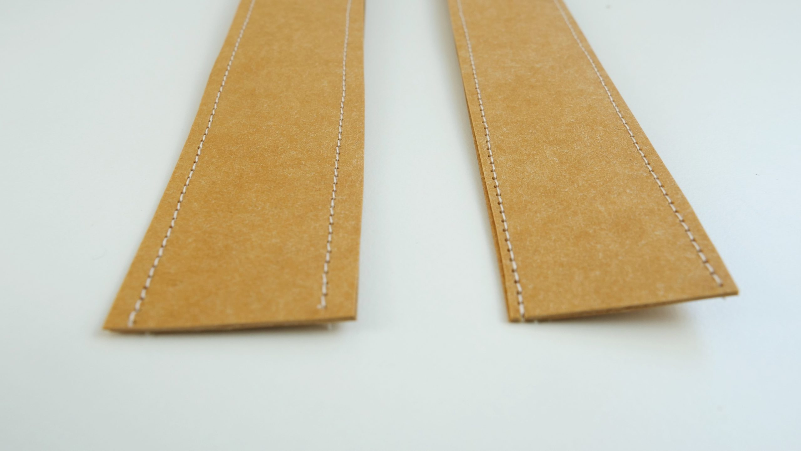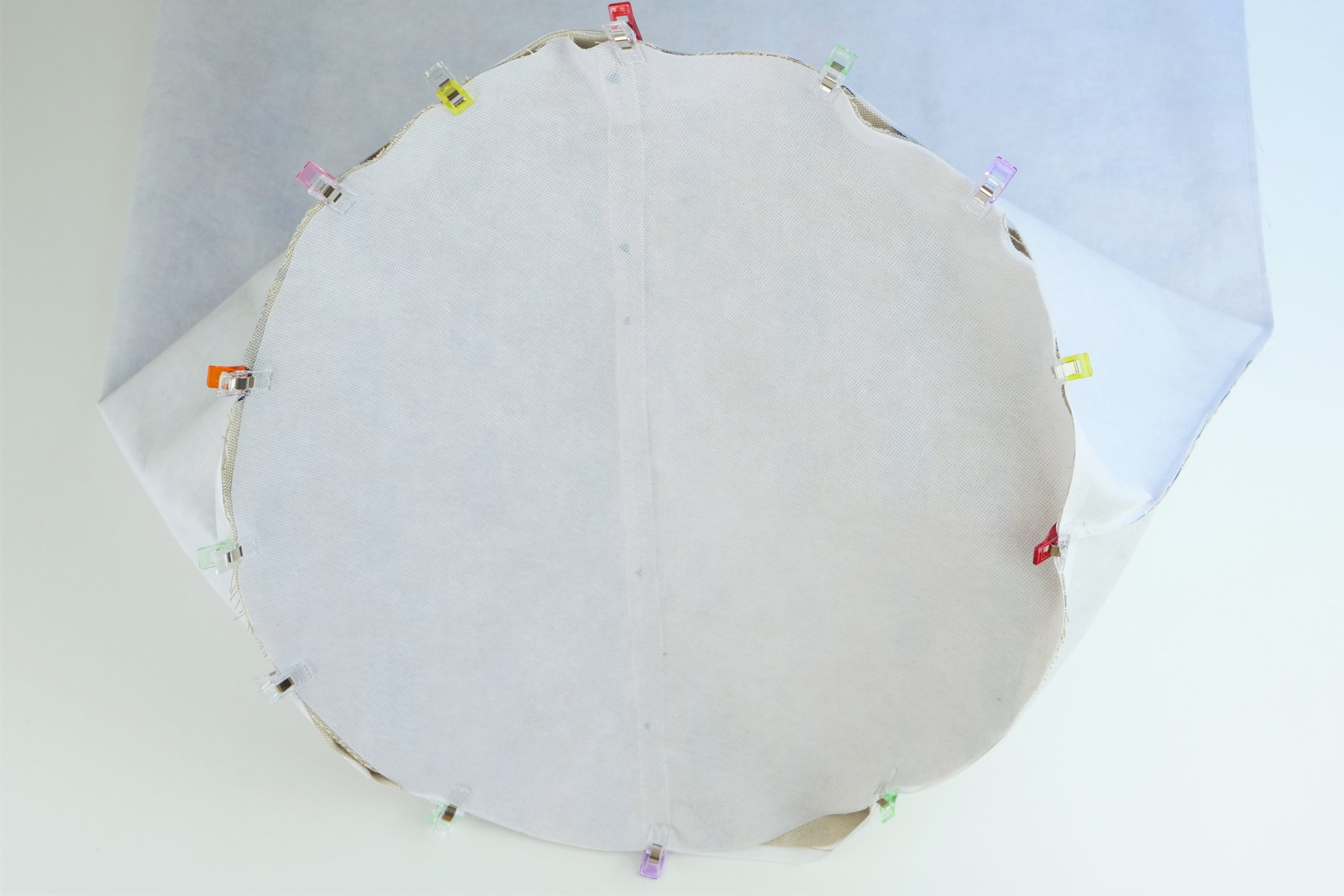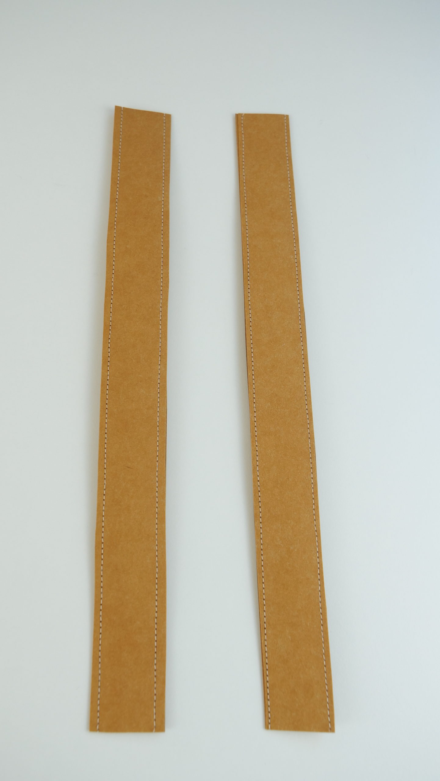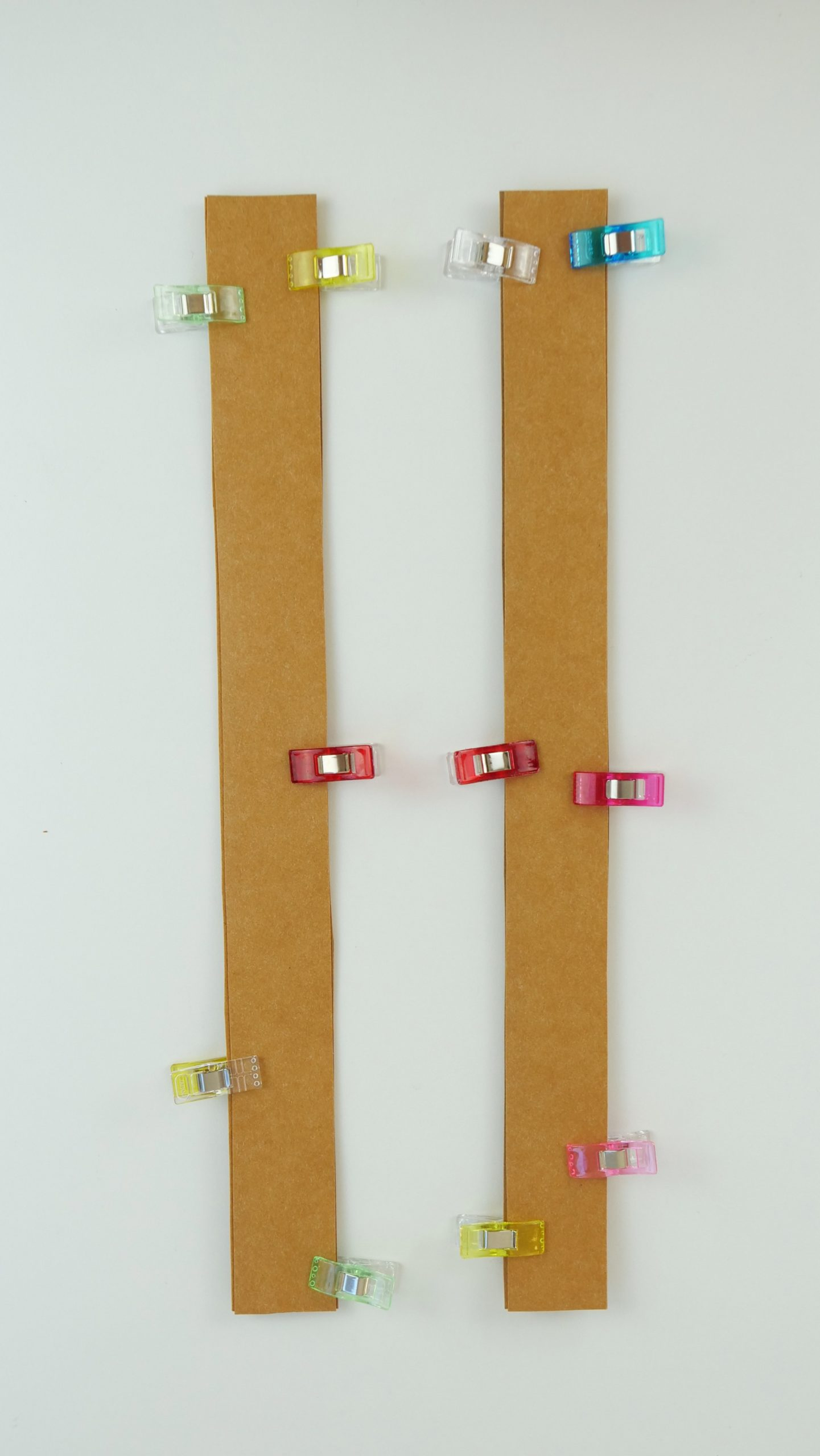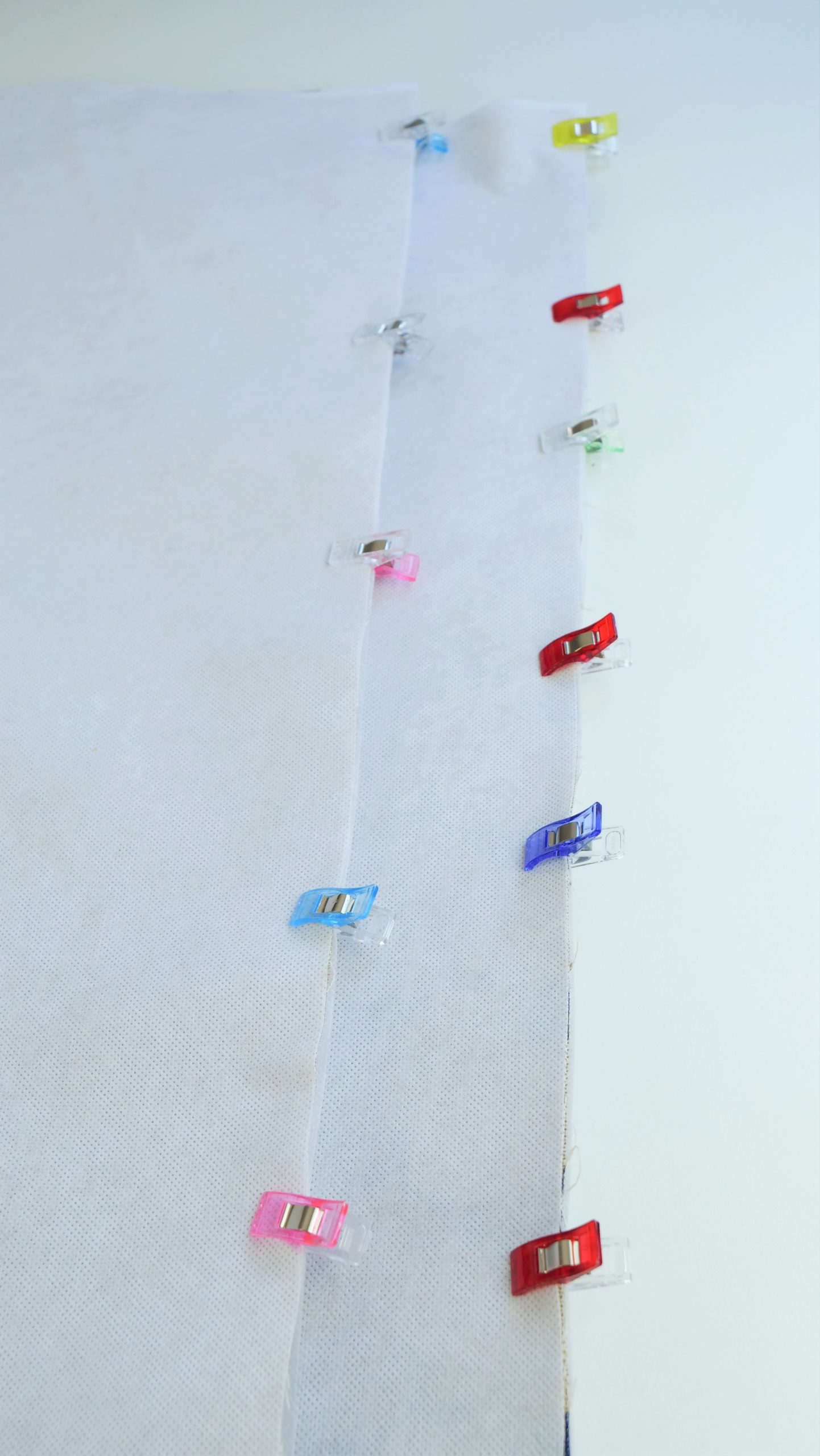 1. Placez 2 morceaux d’anses l’une sur l’autre, envers contre envers, et fixez-les ensemble avec des pinces à tissu.